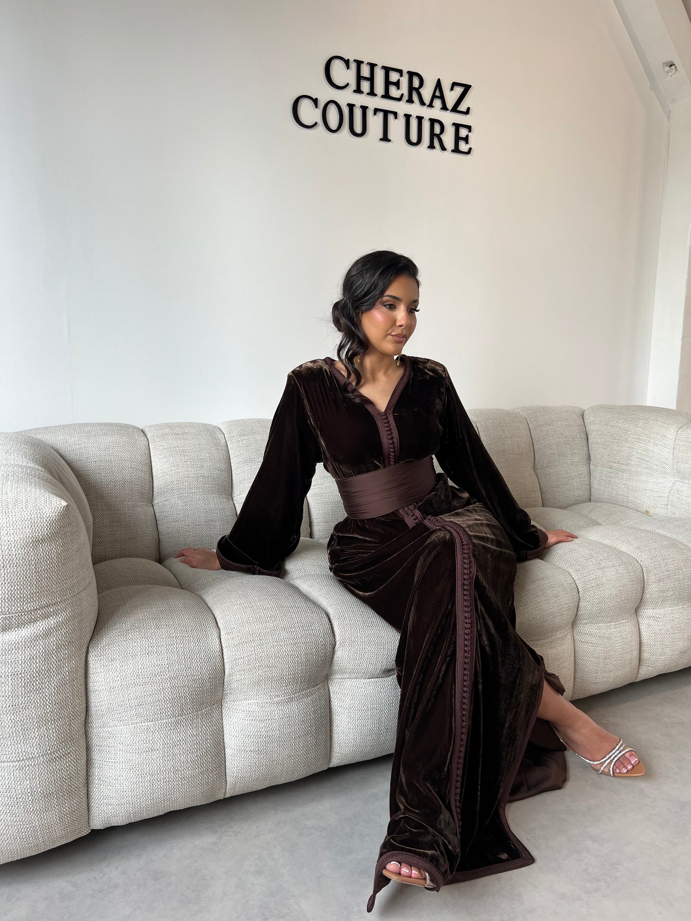 Let yourself be enveloped by the nobility of silk velvet. This garment, sumptuously soft and with a refined sheen, reveals the essence of refinement. The delicate embroidery on the shoulders adds a touch of exceptionality, enhancing the silhouette with elegance and character. Every detail makes this piece a symbol of timeless distinction, designed for those who love to stand out with grace and prestige.