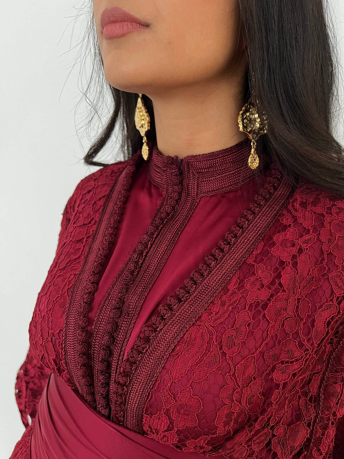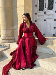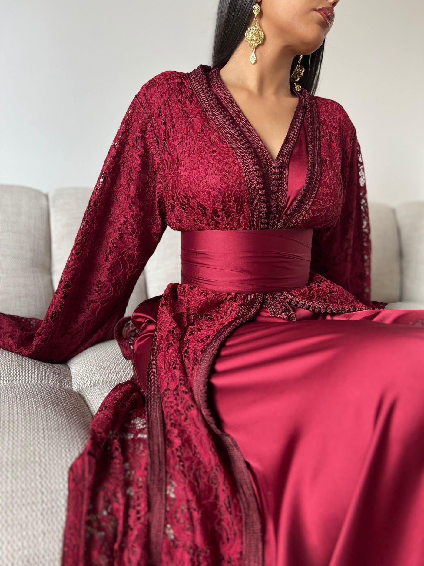 Laissez-vous séduire par l’élégance intemporelle de la dentelle. Cette takshita, délicatement travaillé, incarne la féminité et le raffinement. Ses jeux de transparence et ses motifs délicats subliment chaque silhouette et font de chaque instant une occasion spéciale. Osez révéler votre charme avec cette création en dentelle, pensée pour toutes celles qui aiment se distinguer avec élégance. Elle convient du XS au XL grâce à sa ceinture ajustable, tandis que sa longueur varie entre 160 cm et 165 cm.